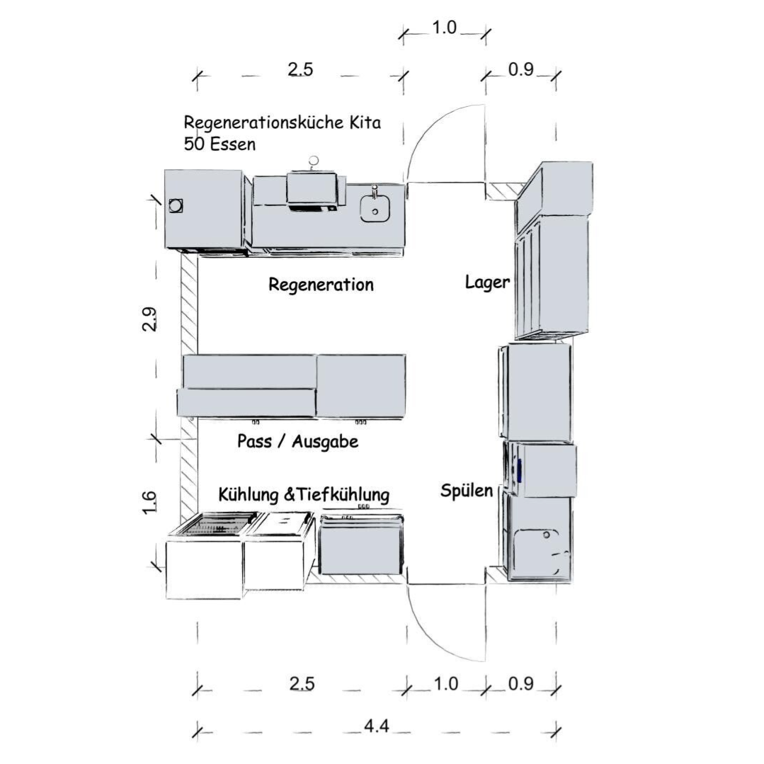 Sie erhalten ein komplett geplantes, montiertes und abgenommenes Küchensystem, das speziell für den Regenerationsbetrieb mit angelieferter Kost konzipiert ist – ideal für Kitas, Schulen oder Einrichtungen mit 15 bis 30 oder 30 bis 50 Essen pro Tag.